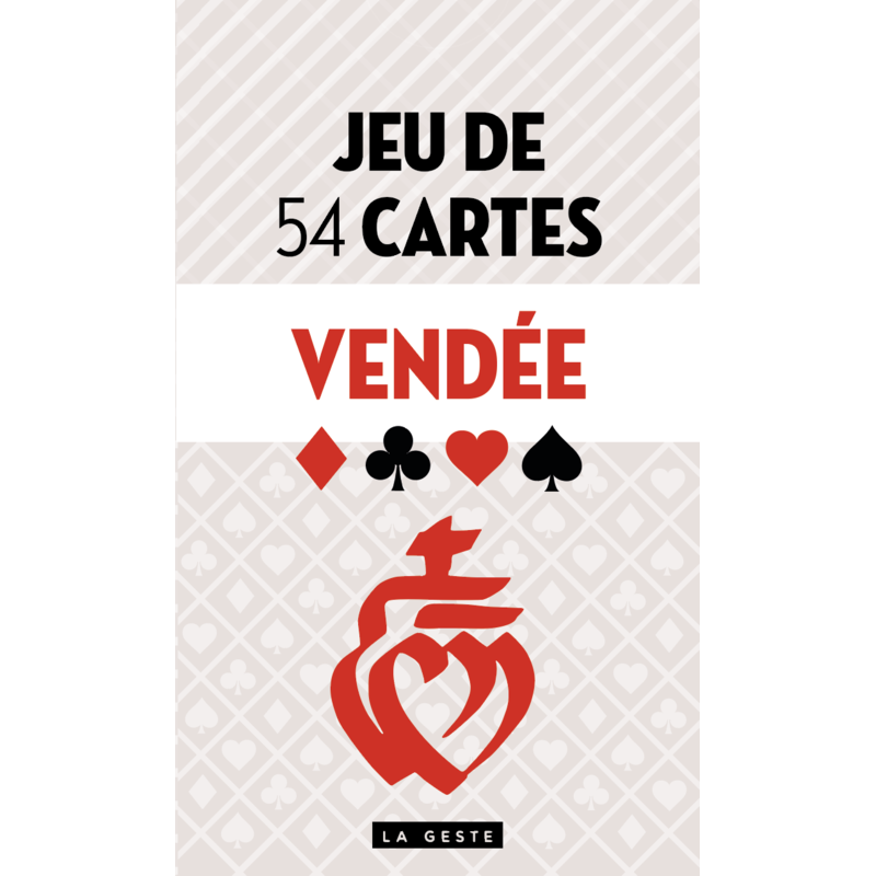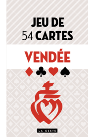 Pour la première fois chez La Geste, découvrez le jeu de 54 cartes traditionnel, mais aux couleurs de la Vendée ! Ce jeu de cartes indémodable est illustré avec des personnalités historiques et des éléments forts du patrimoine local. Une occasion unique de se procurer un jeu adapté à la culture de la région. Avec ce jeu, il est possible de jouer à la belote, la bataille, le poker, le bridge ou encore le rami. Un jeu indispensable que Vendéens et Vendéennes voudront s’offrir !